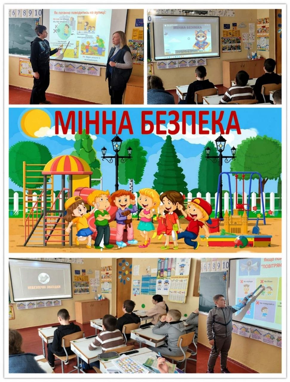 Для учнів 4-х класів було проведено заняття з мінної безпеки та правил поведінки під час повітряної тривоги (поза межами школи).